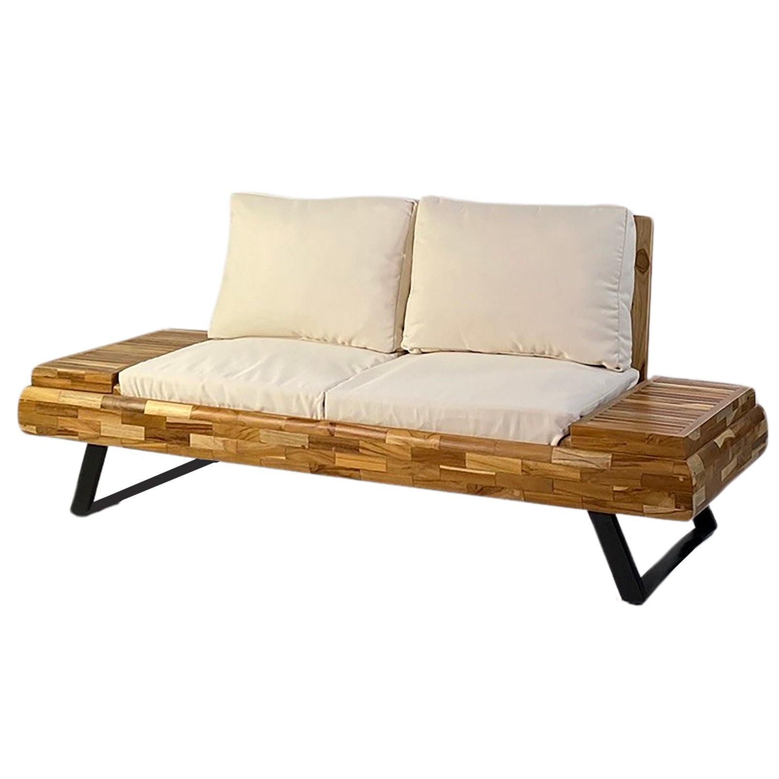 Ce canapé pliable au design moderne habille une terrasse ou un espace lounge. Ce canapé en chutes de bois allie confort et esthétique, idéal pour un intérieur contemporain ou un espace extérieur cosy et chaleureux.