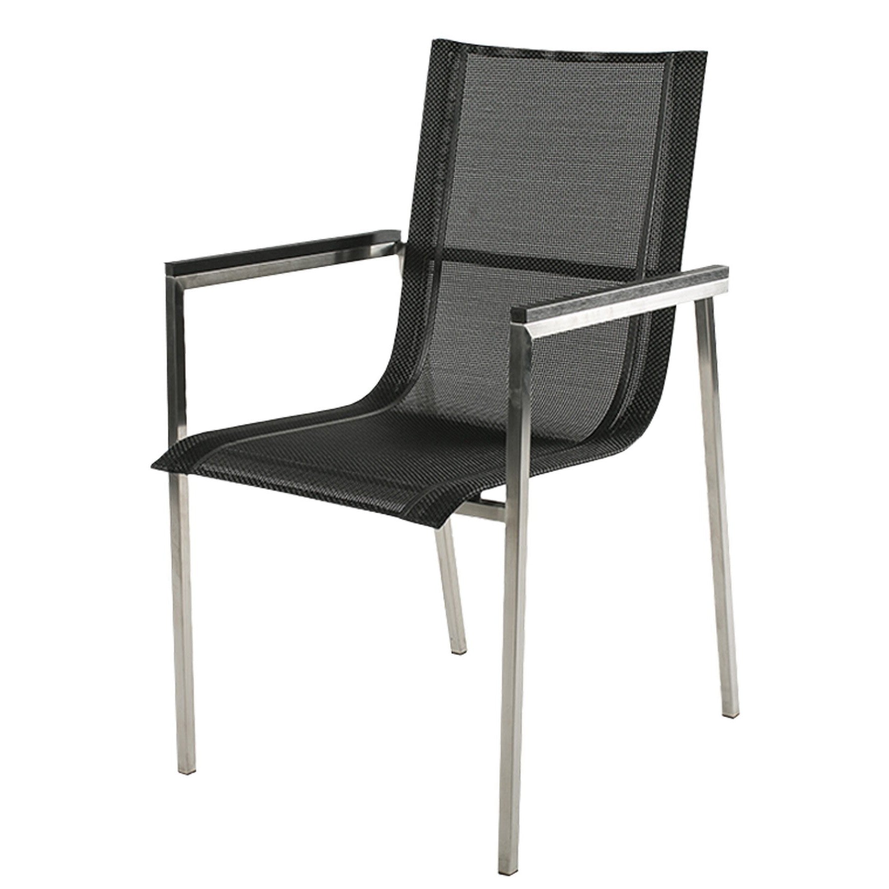 Alliant avec élégance l'inox et le textilen, la chaise Villa avec accourdoirs est parfaite pour aménager votre espace de restauration, de cocktail ou de soirée en intérieur comme en extérieur. Confortable, légère, empilable, elle résiste aux intémpéries et aux rayons UV. Existe en 2 coloris : blanc et noir.