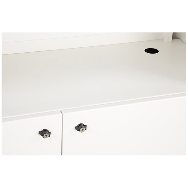 Le Desk Color blanc est un comptoir d'accueil en bois blanc. Il est doté d'un rangement, et de 2 portes fermant à clé. Sa façade est personalisable :